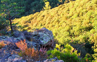 5 - Saint-Jean-de-la-Blaquière – Grandmont – Lodève (Hérault) Languedoc La cloche mène encore le village et la marche efface les douleurs du matin Ce dolmen prie encore de ses fleurs de bruyère (dolmen d'Usclas) Des moines sans écriture il ne reste que l'architecture parfaite et dépouillée d'un prieuré sans âme (Prieuré de Saint-Michel-de-Grandmont) Près de Lodève, un haut lieu sacré domine les paysages environnants, mer, collines et vallée de l'Hérault. Permanence des lieux sacrés : on y trouve des dolmens splendides du IIe millénaire avant J-C au milieu d'un parc de daims et un magnifique prieuré du XIIe siècle, intégralement conservé. Il fut construit par des frères ermites de l'ordre de Grandmont qui disparut au XVIIe siècle. Autrefois maisons des fées autels des sacrifices les dolmens font-ils encore rêver ? Je voudrais être ce grand tombeau perché qui passe son temps - entouré par les daims - à regarder la mer (Dolmen de Grandmont) Derrière le cloître les marches creuses de l'escalier sentent des siècles de prière et plus loin les dalles du chemin recueillent dans leurs ornières la sueur des carriers (avant le village de Soumont) Les marches usées de l'escalier du cloître, aux arcanes mystérieuses, les ornières creusées par les charrettes transportant les pierres de la carrière de Soumont, toutes ces humbles traces matérielles des activités humaines, travail, prière, je les relève avec émotion. Le blanc et le noir dans la belle âme s'équilibrent Au gîte le mari peint et le labrador dévore mon pique-nique (Lodève) |
